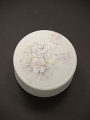 scatolina in biscqui fabbricata e decorata a Limoges Francia decoro floreale "Sergio" Le Roy tipo scatola Aurora diametro 8 cm. altezza 2,5 cm.