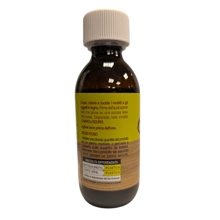 Ritocco liquido per legno, colora e lucida mobili e oggetti in legno.