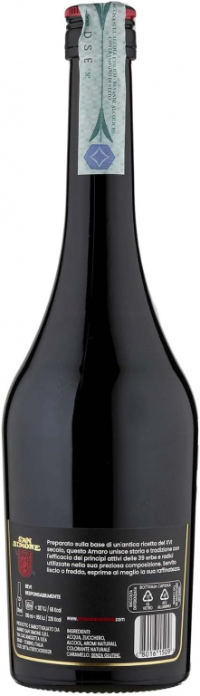 - Ingredienti: Acqua, zucchero, alcol, aromi naturali (da 39 erbe e radici), colorante naturale caramello.