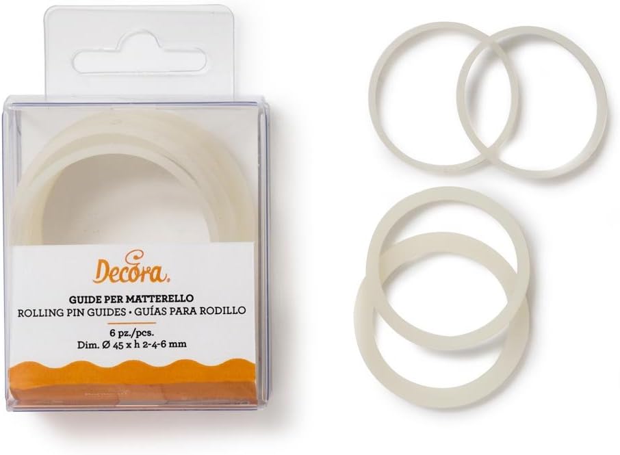 Pratiche guide da posizionare alle estremità del matarello per dare spessore uniforme alla pasta di zucchero, alla pasta frolla ed a impasti vari.