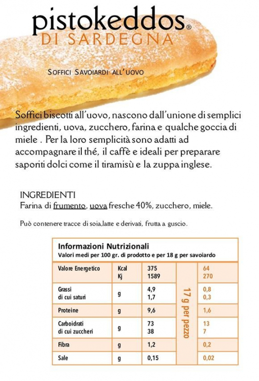 Tipologia: Biscotti morbidi all'uovo (simili a savoiardi).