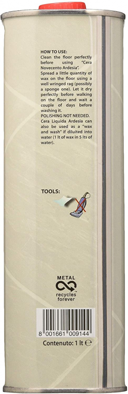 Cera per ardesia è una cera liquida auto-lucidante all'acqua per superfici in ardesia e per tutte le pietri naturali., Dona splendore, nutrimento e lucentezza rivestendole di una pellicola invisibile che protegge a lungo dalla polvere, dallo sporco e dal calpestio. E' di facile e veloce applicazione. Per mantenere lo strato ceroso sempre brillante usare la cera diluita in acqua di tanto in tanto (1 bicchiere di cera in 5 litri d' acqua).
