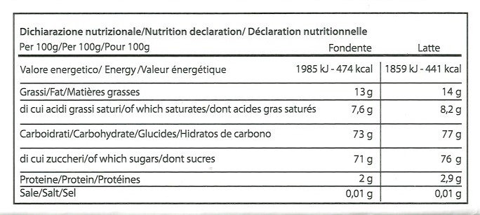 DICHIARAZIONE NUTRIZIONALE / Nutrition Declaration (Per 100 g)