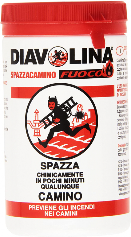 Produttore: Fabbrica Chimica Unione (Diavolina). Tipologia: Pulitore chimico per canne fumarie (spazzacamino chimico). Formato: Barattolo da 270 g. Caratteristiche e Benefici: