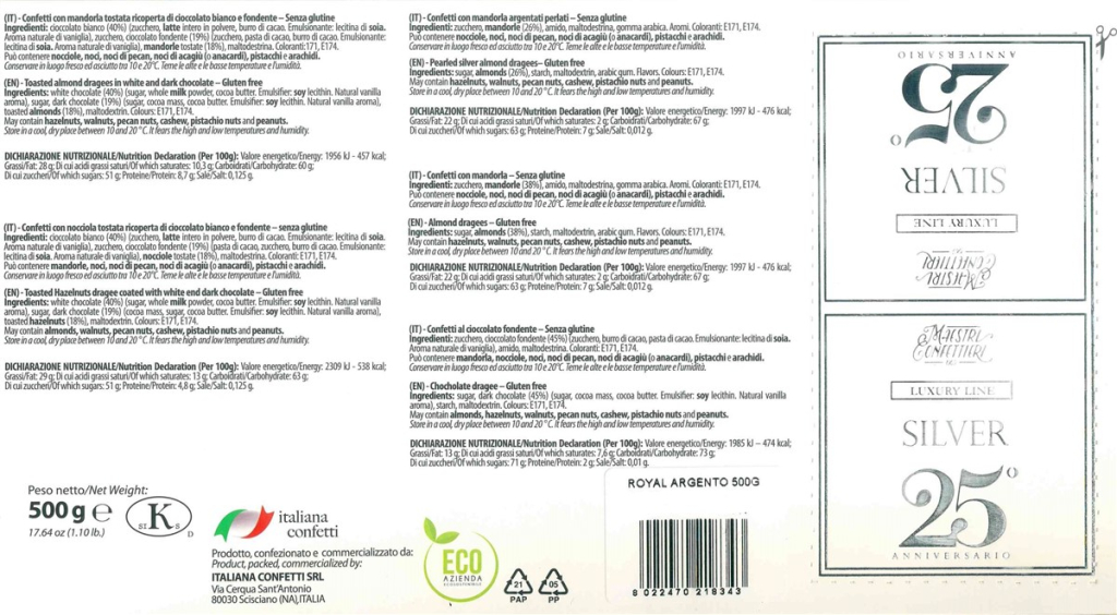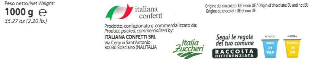 scatola da 500 grammi contenente tra i 100 e i 110 confetti