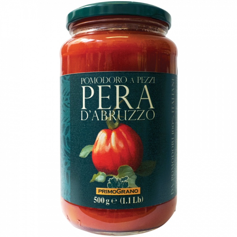 Specialità della Linea PrimoGrano, la varietà di pomodoro autoctona denominata “Pera” cresce in Abruzzo, è unica nel suo genere e diversa da tutti gli altri tipi di pomodoro. Coltivata da secoli, si caratterizza per il fatto di avere pochissimi semi, di essere molto polposa, e avere un peso tra i 300 e i 500 grammi. Particolarmente adatto per la preparazione di sughi, il suo gusto dolce e vellutato, unito alla sua bassa acidità, caratterizza questo ortaggio rendendolo maggiormente pregiato rispetto alle varietà più comuni.