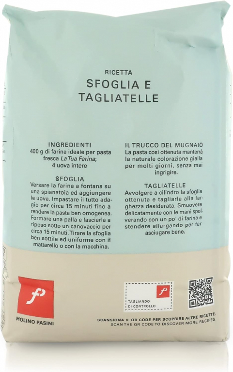 Farina di Grano Tenero 00 Pasta Fresca di Molino Pasini è il segreto per una pasta fatta in casa a regola d'arte. Questa farina di altissima qualità, parte della linea professionale "La Tua Farina", è stata studiata per conferire all'impasto una perfetta elasticità e compattezza, garantendo una lavorazione facile e un risultato impeccabile in cottura.