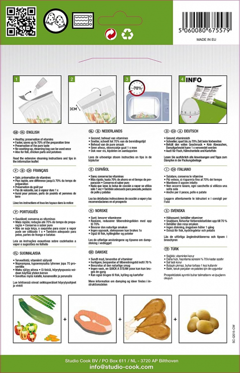 - Un sacchetto per la cottura a vapore permette di cuocere nel microonde in modo rapido, delicato e sano.