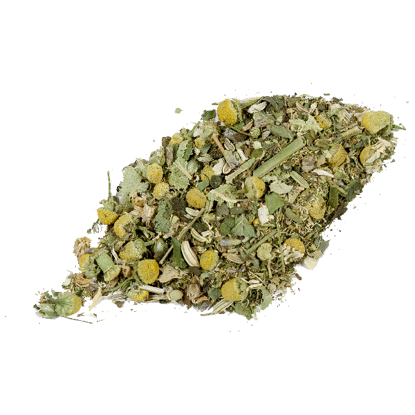 Ingredienti: camomilla, finocchio semi, tiglio, menta piperita, fiori di luppolo, melissa foglie, passiflora, biancospino, lavanda, maggiorana, asperula