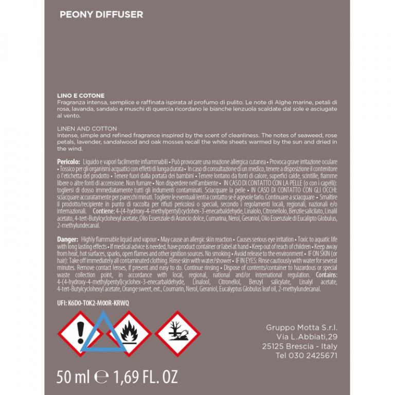Muha' Diffusore PEONY 50 ml. - ROSA LINO E COTONE