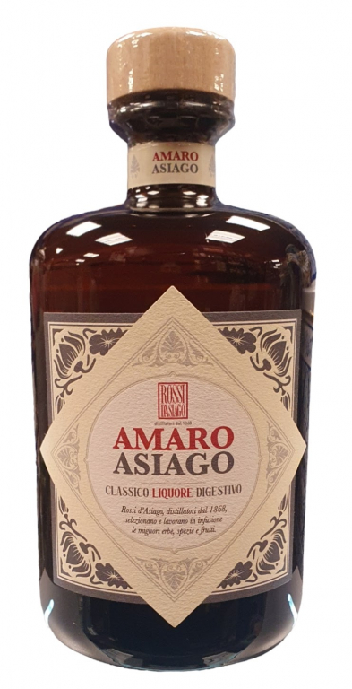 L’Amaro Asiago “edizione farmacia”, sinonimo di tradizione e qualità, è un liquore digestivo prodotto secondo l'antica ricetta ed ottenuto dall'infusione di erbe e radici alpine unite alle spezie e ai fiori. Il profumo è avvolgente, agrumato, erbaceo e speziato. Sul palato, le note amare della genziana e del rabarbaro s'incontrano con i sentori agrumati dell'arancia e del coriandolo.