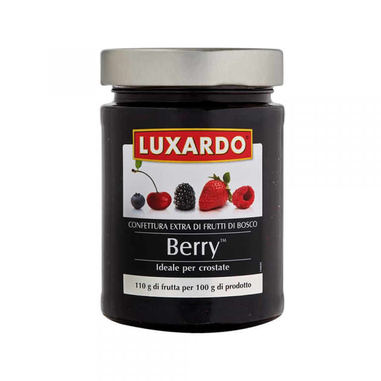 Ingredienti: frutti bi bosco (mirtilli 30%, ciliegie selvatiche 25%, more 25%, fragole 15%, riber nero 10%, lamponi 5%). zucchero