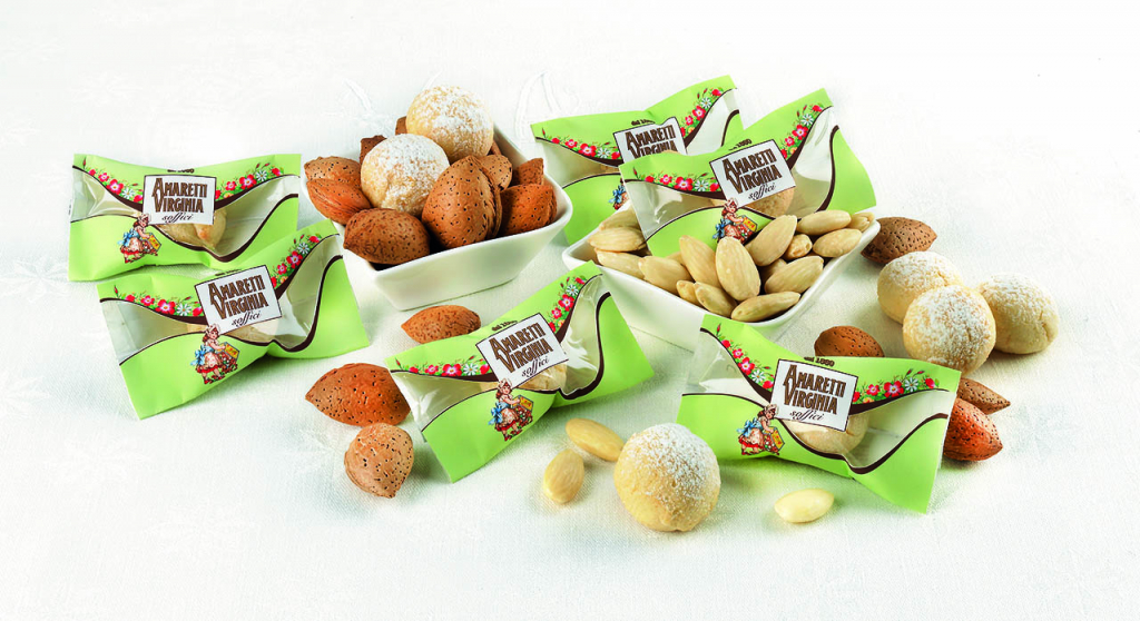 Produttore: Amaretti Virginia. Sede: Sassello (SV), Liguria, Italia. Tipologia: Pasticceria secca (morbida). Formato: Confezione da 1 kg (amarettini da circa 10 g l'uno, sfusi e incartati singolarmente). Ingredienti: Zucchero, mandorle d'albicocca (armelline) 36%, MANDORLE 2,5%, albume d'UOVO, sciroppo di glucosio, conservante: potassio sorbato. Allergeni: MANDORLE, UOVO. Può contenere tracce di ALTRA FRUTTA A GUSCIO e SOLFITI.