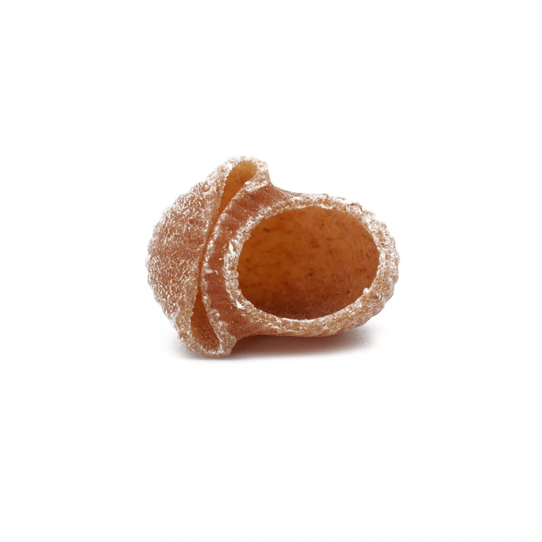 Le fettuccine sono preparate con farina di farro integrale macinata a pietra e hanno una superficie estremamente porosa.