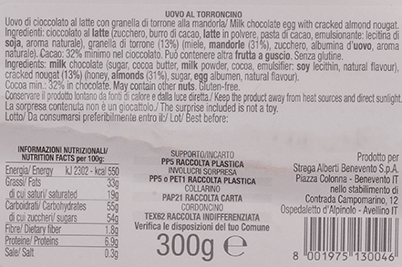 UOVO DI CIOCCOLATO AL TORRONCINO 300G