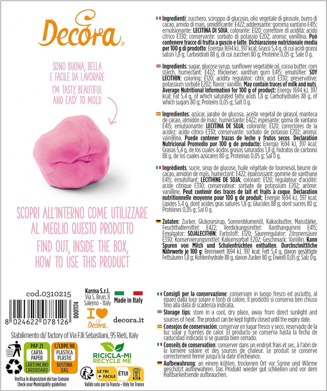 Un prodotto, diversi utilizzi. La perfetta malleabilità ed elasticità data dal burro di cacao la rendono ideale anche per realizzare fiori e soggetti 3d. Favolosa per ricoprire torte, cupcakes e biscotti, buona e gustosa da mangiare. Pronta all’uso.