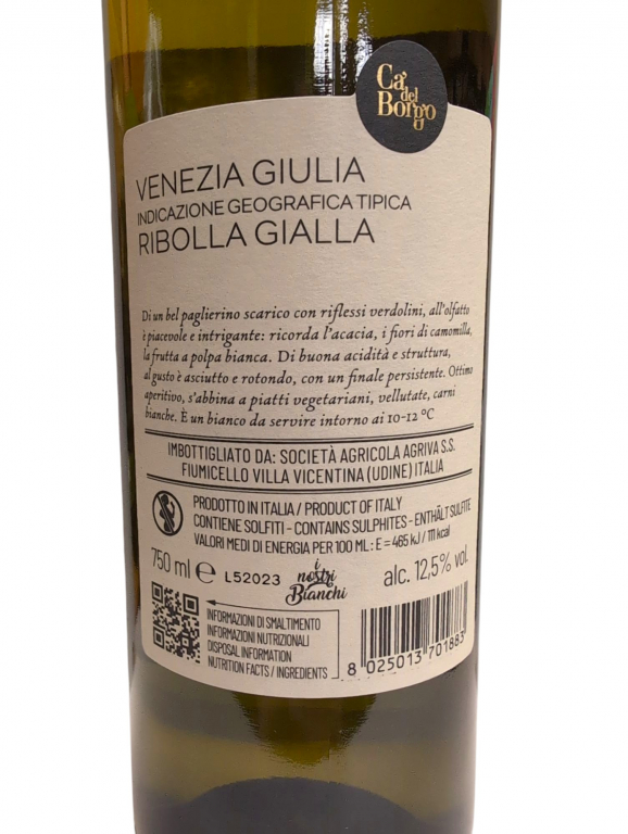 - Il Ca' Del Borgo Ribolla Gialla è prodotto con uve Ribolla Gialla, un vitigno autoctono del Friuli Venezia Giulia.