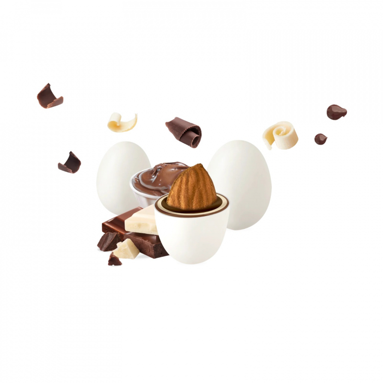 Mandorla tostata ricoperta da cioccolati assortiti e da un sottile strato di zucchero.