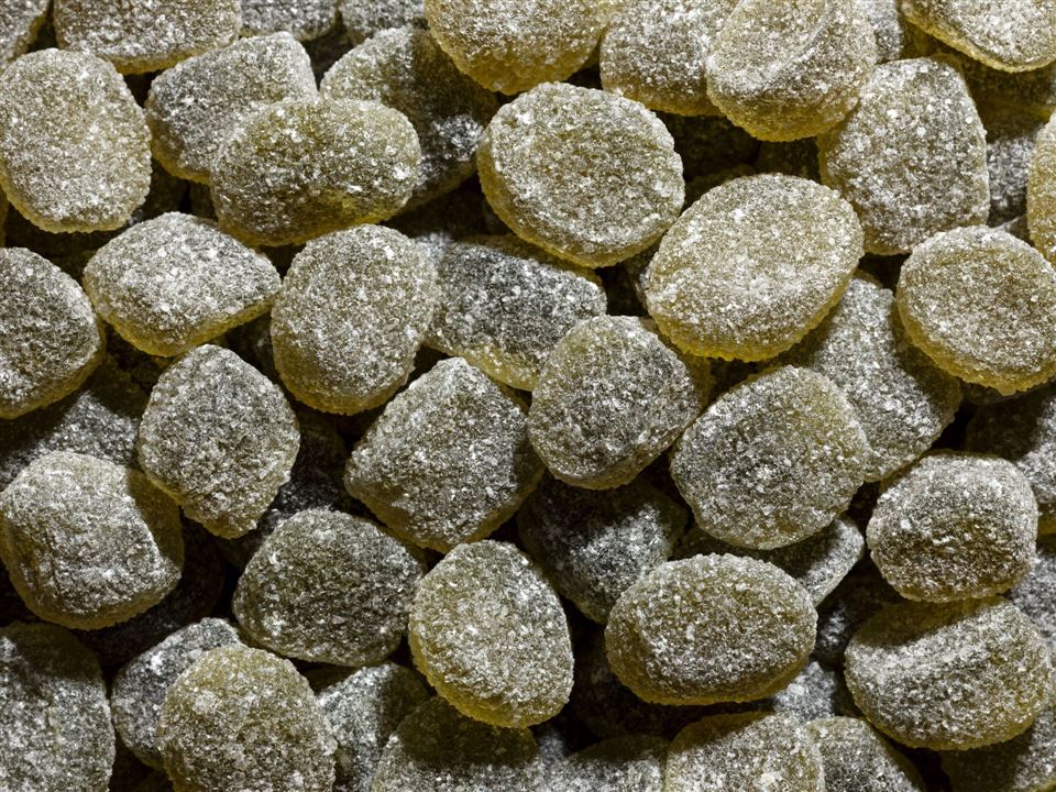 Ingredienti Gomma arabica Kordofan, zucchero, sciroppo di glucosio, olio essenziale di pino siberiano, aromi. Colorato con complessi rameici delle clorofilline.