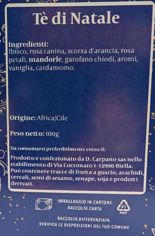 Prodotto e confezionato da Drogheria Carpano sas Via Cocconato, 1 13900 Biella