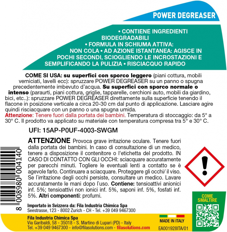 - POWER DEGREASER di FILA Surface Care Solutions è un prodotto sgrassante universale a schiuma attiva.