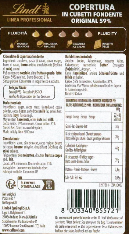 Ingredienti: zucchero, pasta di cacao, cacao magro, burro di cacao,