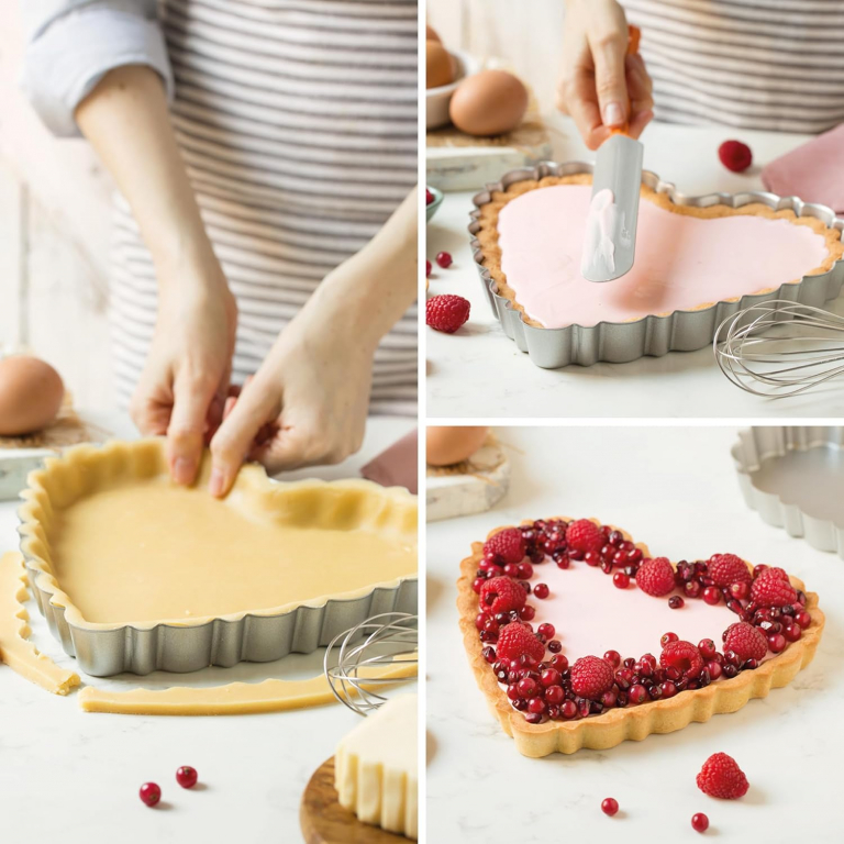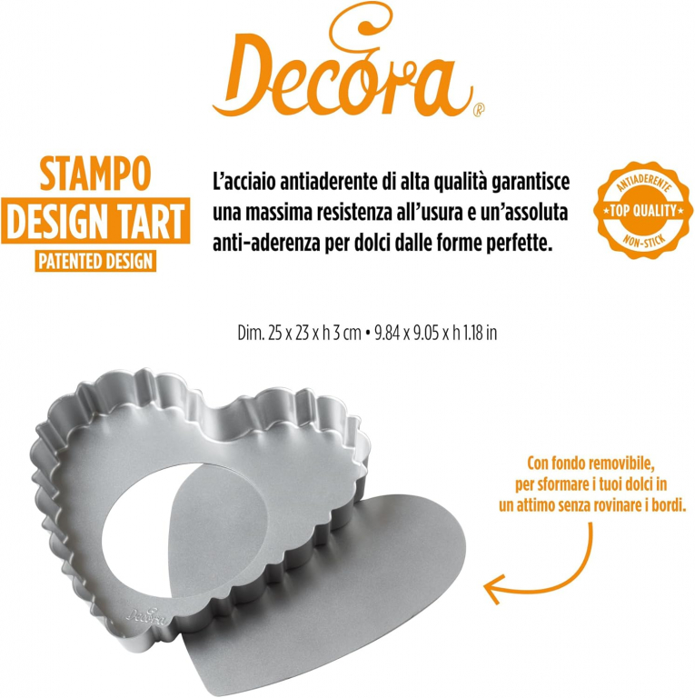 CONTENUTO - A casa riceverai uno stampo antiaderente di alta qualità per crostate di forma a cuore con base removibile. Il fondo rimoviblie di questo prodotto rende facile sformare i dolci che hai preparato senza rovinare l'aspetto estetico della creazione. La teglia è realizzata in acciaio antiaderente. Il design registrato e brevettato rende il prodotto unico ed innovativo.