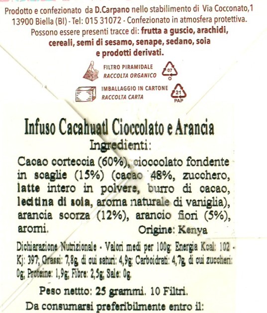 Prodotto e confezionato da D. Carpano nello stabilimento di Via Cocconato, 1 13900 Biella