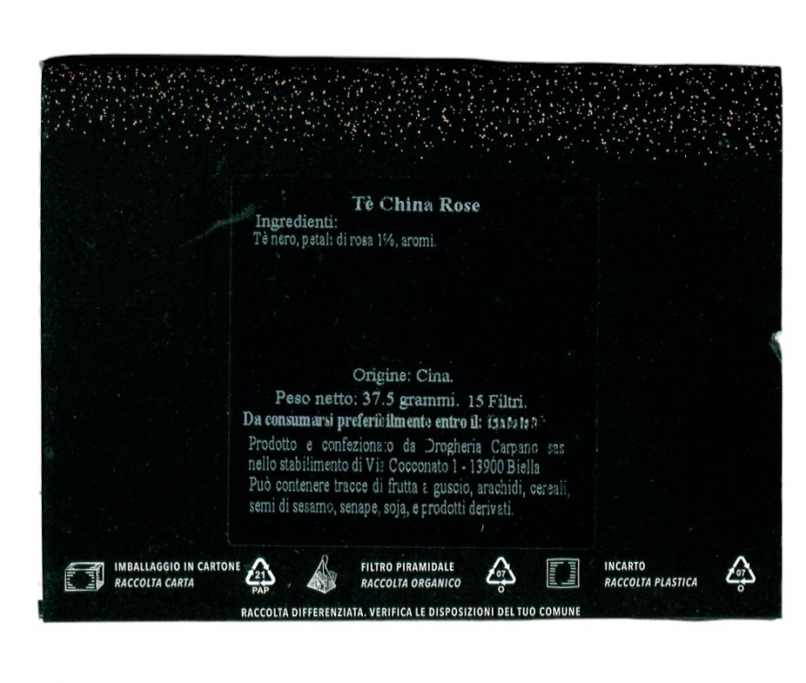 Prodotto e confezionato da Drogheria Carpano sas nello stabilimento di Via Cocconato, 1 13900 Biella