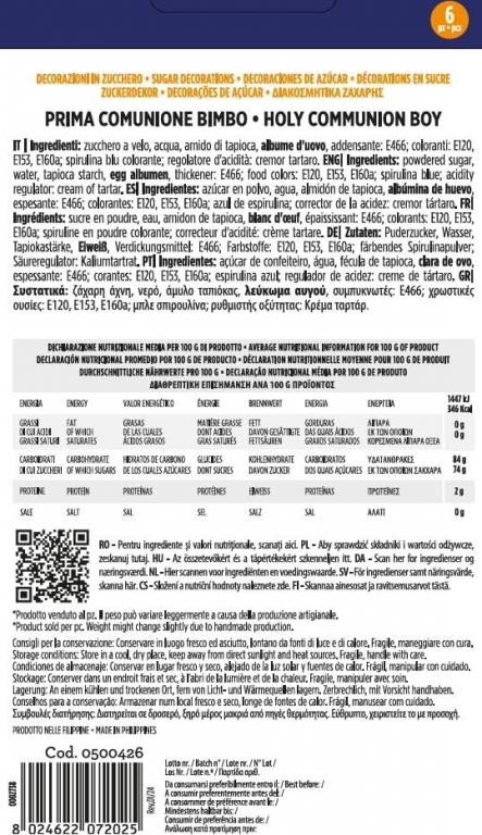Decora decori di zucchero PRIMA COMUNIONE BIMBO 6 pz.