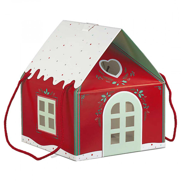 Sono realizzate in carta kraft decorata e dotate di una chiusura ad incastro sul tetto che garantisce una perfetta tenuta e protezione dei prodotti al loro interno. I pratici manici in corda consentono di trasporla comodamente