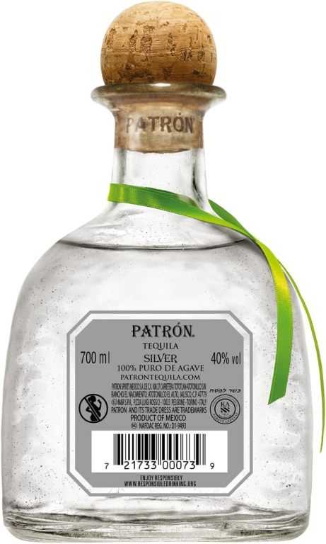 Produttore: Patrón Spirits Company (Distilleria Hacienda Patrón, Jalisco, Messico). Tipologia: Tequila Silver (Blanco). Materia Prima: 100% Agave Blu Weber raccolta a mano nei territori degli Altos di Jalisco. Gradazione Alcolica: 40% Vol. Formato: Bottiglia da 70 cl, venduta in Astuccio (caratteristica confezione rifinita).