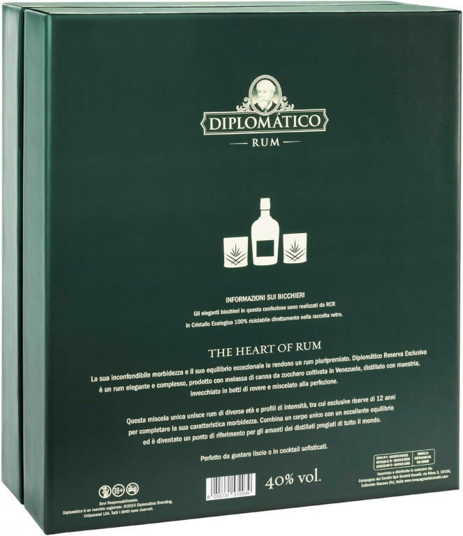 Produttore: Destilerías Unidas (Venezuela). Tipologia: Rum Añejo (Miscela di rum invecchiati fino a 12 anni). Gradazione Alcolica: 40% Vol. Formato: Bottiglia da 70 cl. Contenuto Astuccio: 1 Bottiglia di Reserva Exclusiva + 2 Bicchieri in vetro originali (disegnati per esaltare il bouquet aromatico del rum).