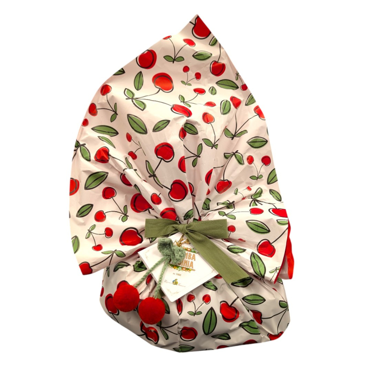 Un'Esplosione di Frutta e Soffice Bontà: il classico lievitato pasquale rivisitato in una versione golosa, dove l'impasto tradizionale a lievitazione naturale incontra la dolcezza succosa delle amarete candite, avvolto in una scenografica confezione a "ciuffo".
