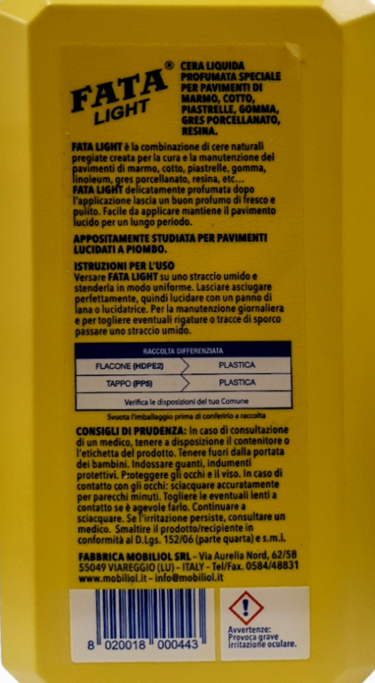 A base di cera carnauba ed altre materie prime di qualità, profumata e delicatamente metallizzata. Ideale per pavimenti di marmo, graniglia, cotto, linoleum; specifica per pavimenti lucidati a piombo.