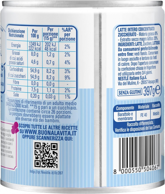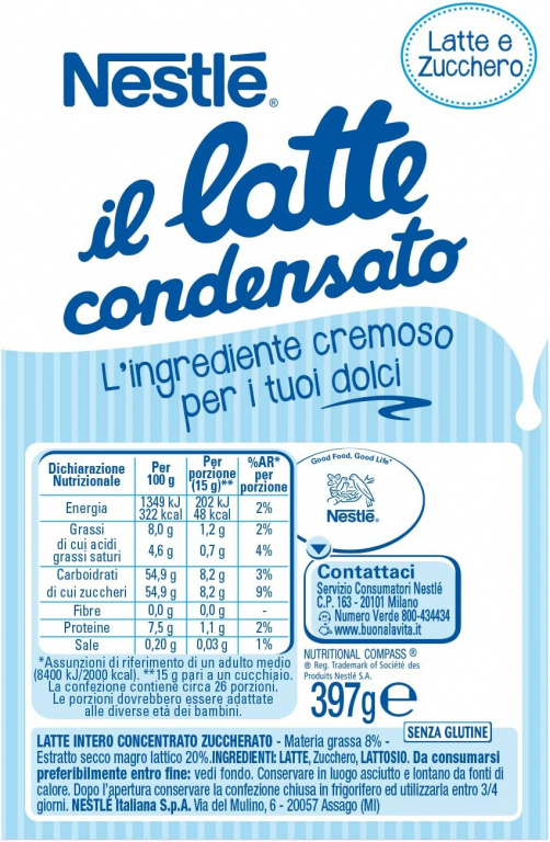 Il Latte Concentrato Zuccherato è un prodotto nutriente ed energetico ed è ottenuto concentrando latte fresco intero a bassa temperatura. E' un ottimo alimento per reintegrare le energie ed un ingrediente ideale per dolci. Da oggi nella pratica confezione con nuova apertura servi-facile per un perfetto dosaggio.