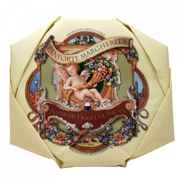 Il Panforte Margherita è la rivisitazione in chiave moderna del Panforte, ideata dai pasticceri del tempo per rendere onore alla Regina Margherita in visita a Siena.