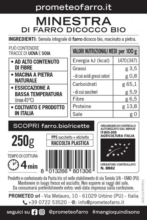 INGREDIENTI *semola integrale di farro dicocco macinata a pietra. (*) ingrediente biologico